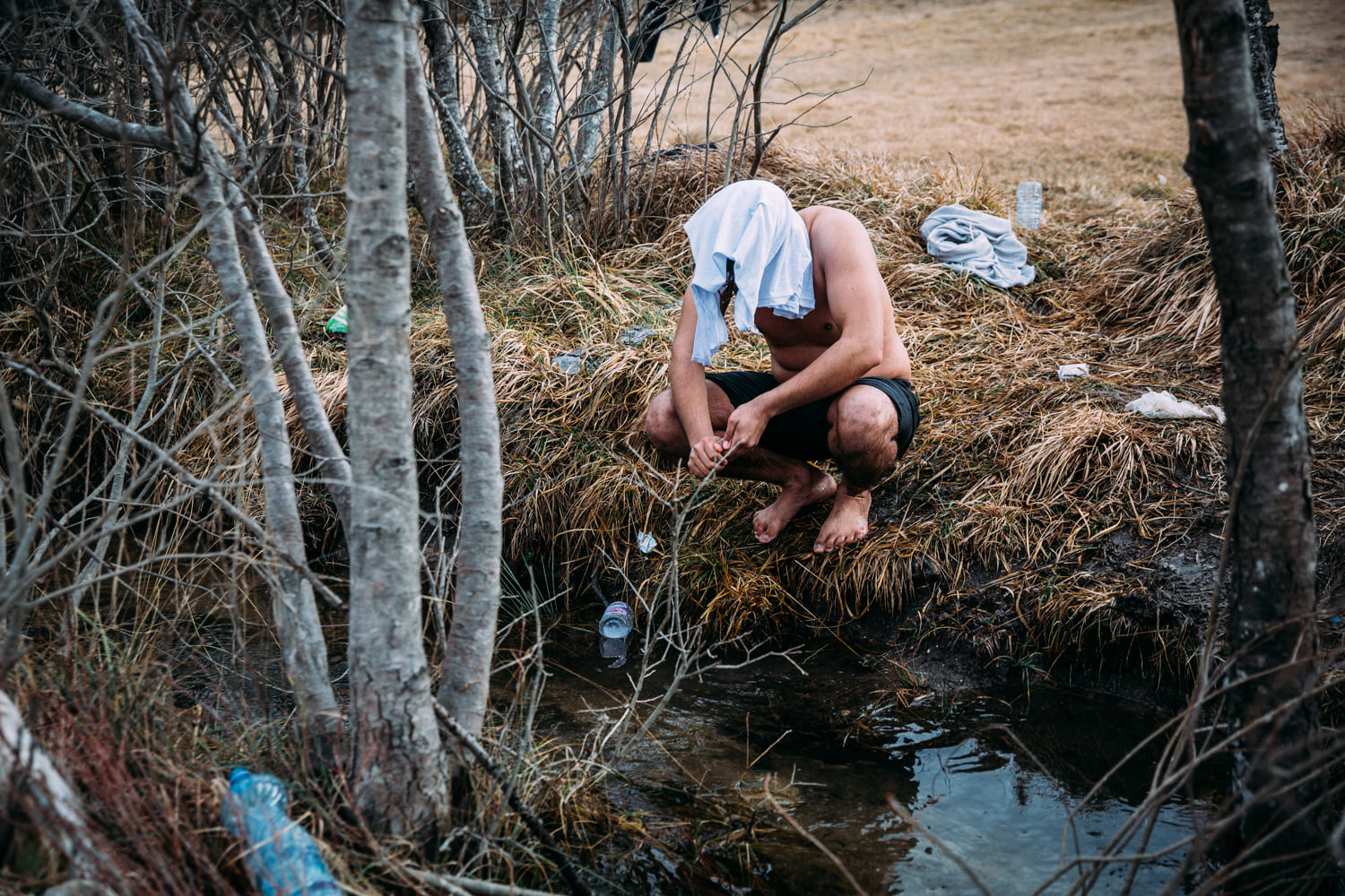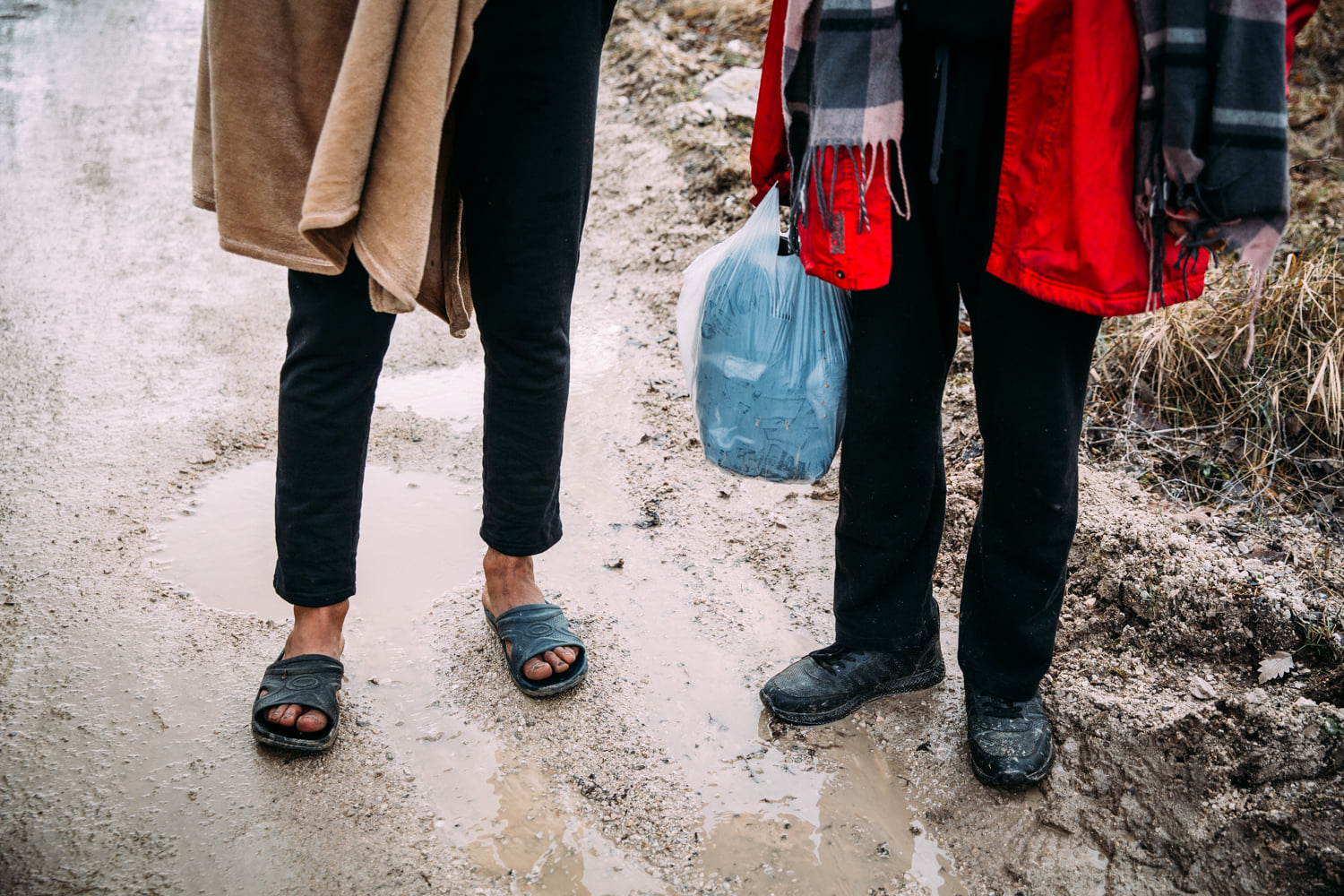 "Heute war mein erster Tag in Bihac. Leider durften die Sachspenden von Space-eye heute nicht verteilt werden. Der Sprinter war in erster Linie voll mit Zelten, die den Menschen etwas mehr Schutz für die Nacht geben sollten. Auch die Isomatten und warmen Anziehsachen blieben eingeschlossen, die Behörden verboten die Verteilaktion. Am Morgen früh, habe ich mit Irina auch meinen Leihwagen hoch voll mit neuen, warmen Winterschuhen, warmen Socken, Mützen, Tee, Becher und Kordel für Planen und Zelte beladen und jeweils den kompletten Bestand des Geschäftes aufgekauft, mit der Hoffnung so schnell wie möglich viele warme Sachen zu verteilen. Aber auch mein Auto habe ich heute am Nachmittag wieder voll mit zurückgenommen. Das ist unheimlich frustrierend, wenn man sieht wie die Menschen dort leben müssen und man darf nichts dagegen tun. Während der Wartezeit auf eine hoffentlich positive Entscheidung für die Verteilaktion, bin ich um das Lager gegangen und habe mit vielen Leuten gesprochen. Ich bin im unteren Teil um viele Kothaufen herumgelaufen und habe mich sehr geschämt ein Mensch zu sein. Geschämt weil ich mich gefragt habe was uns das Recht gibt mit Menschen so umzugehen. ...... Gestern gab es nur eine Brotzeit mittags und 0,5l Wasser dazu, heute überhaupt nichts. Die Menschen gehen an einen kleinen Bach um sich zu waschen und dort Wasser zu holen."