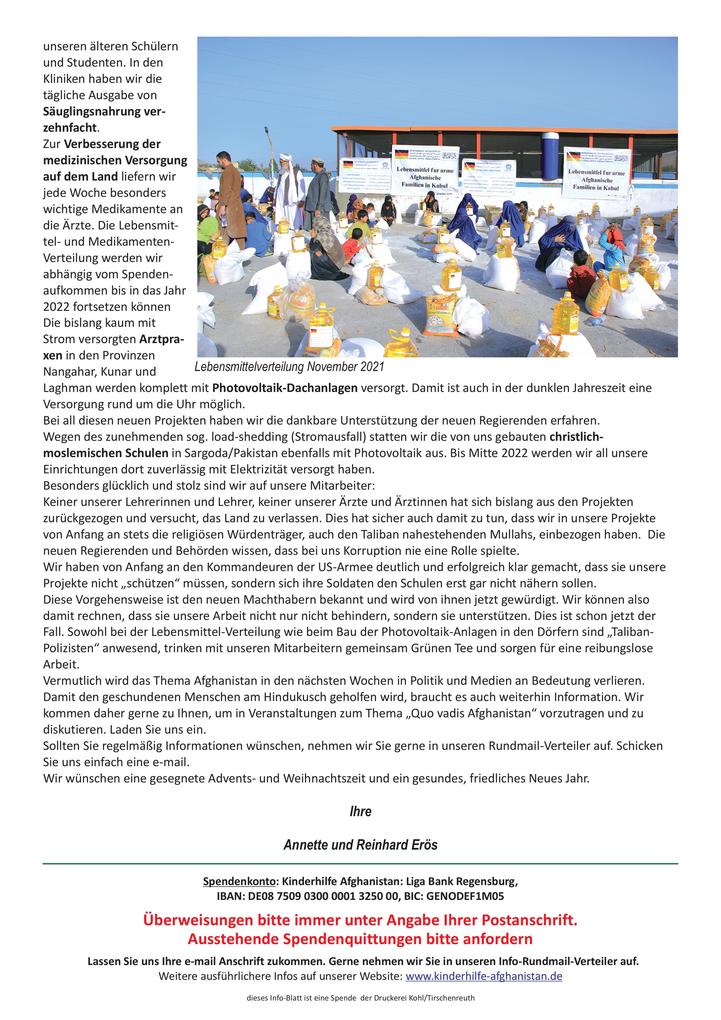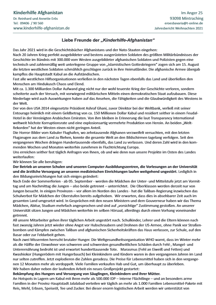 Durch einen Besuch auf der Webseite der Kinderhilfe Afghanistan (www.kinderhilfe-afghanistan.de) kann man weitere Informationen bekommen. Ein aktueller Rundbrief der Initiative ist in den Bildern zu lesen.