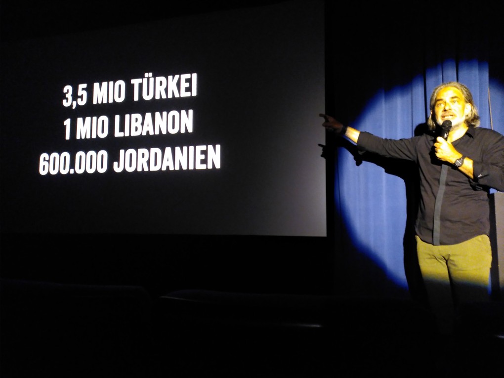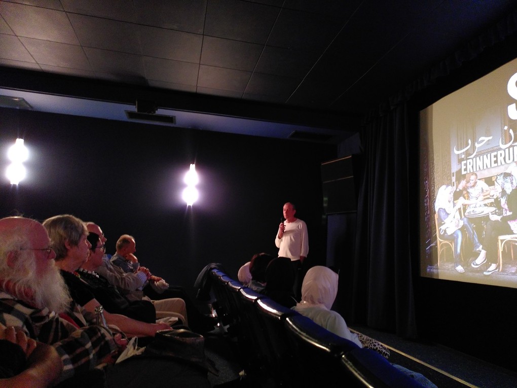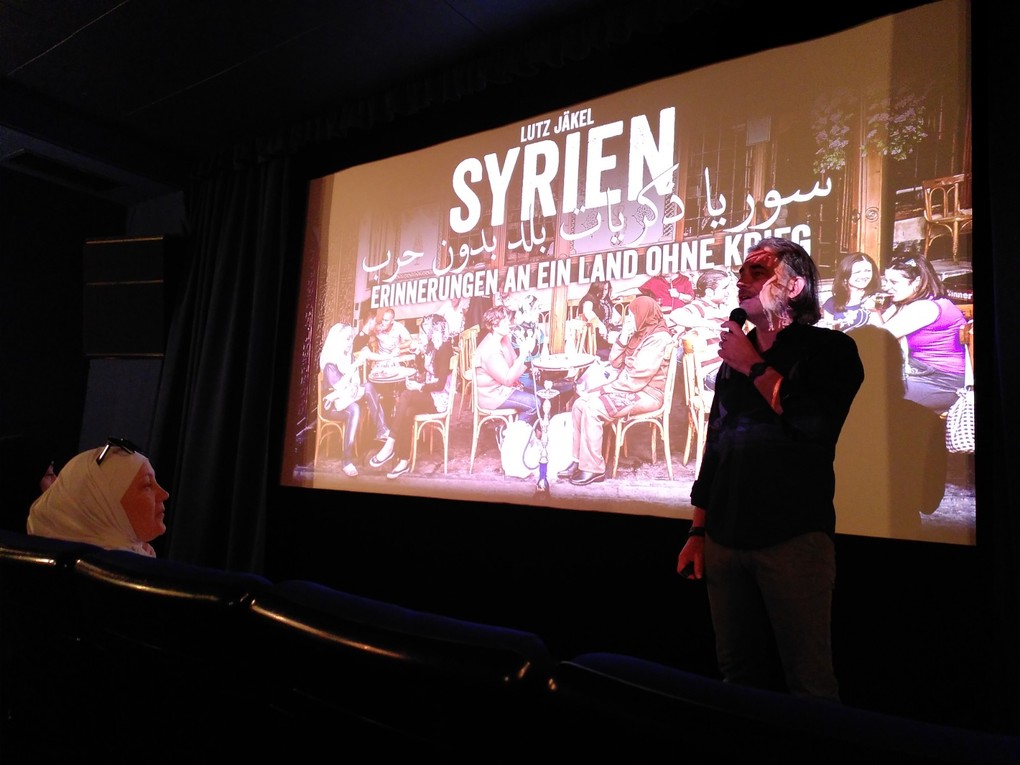 Das Kino war gut gefüllt mit einem deutsch-syrischen Publikum, alle erlebten einen ganz besonderen Abend mit wunderbaren Bildern und Geschichten aus den Reisen Jäkels aus Zeiten vor dem Krieg. Insbesondere durch die Einbeziehung der syrischen Gäste in den Vortrag kam eine besondere Lebendigkeit auf, wurden die kleinen Geschichten, die die Bilder erzählten, bestätigt und ergänzt.