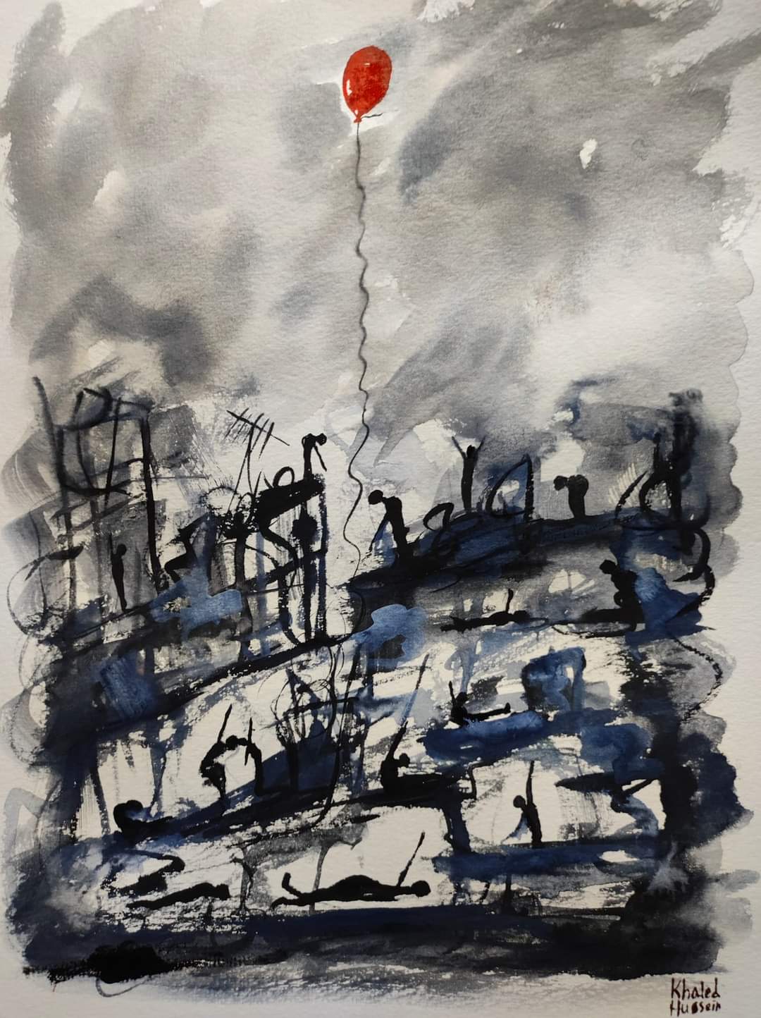 Auf beachtenswerte Weise verbinden seine Werke die Themen Krieg, Zerstörung und Flucht mit Elementen von Hoffnung und der Sehnsucht nach Frieden.