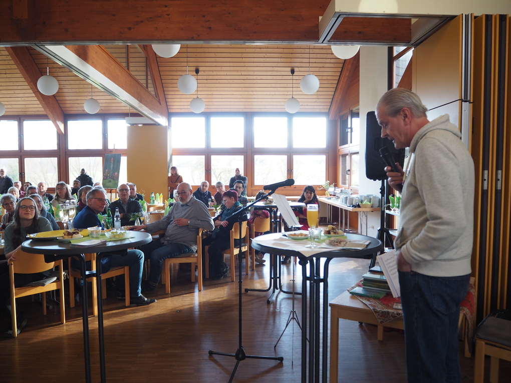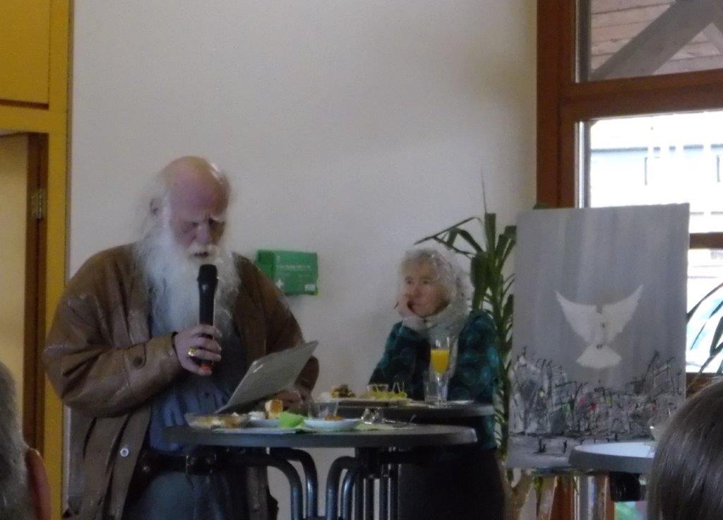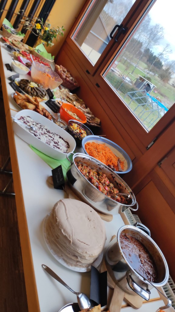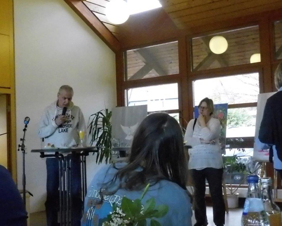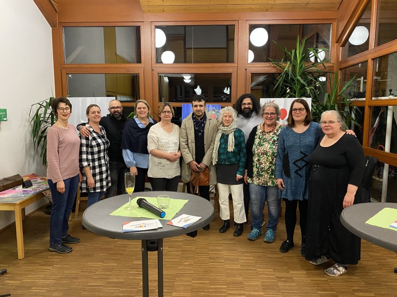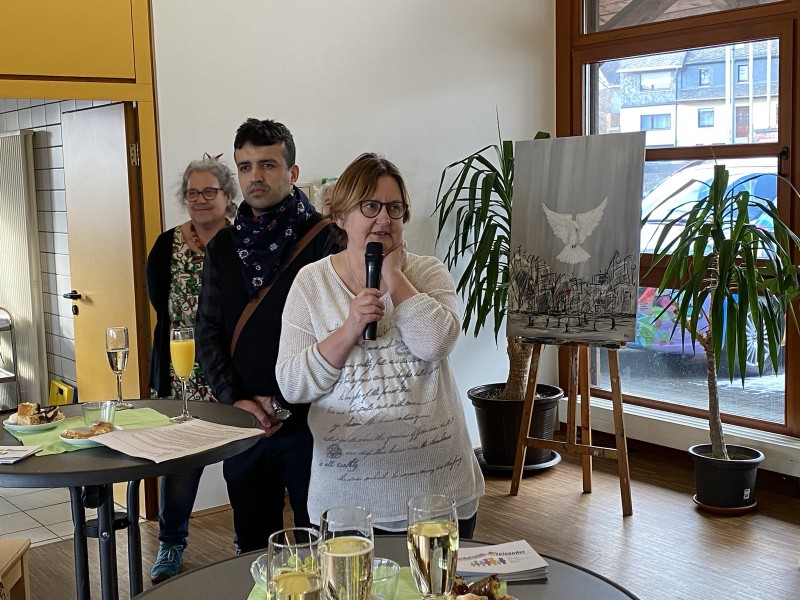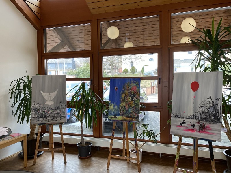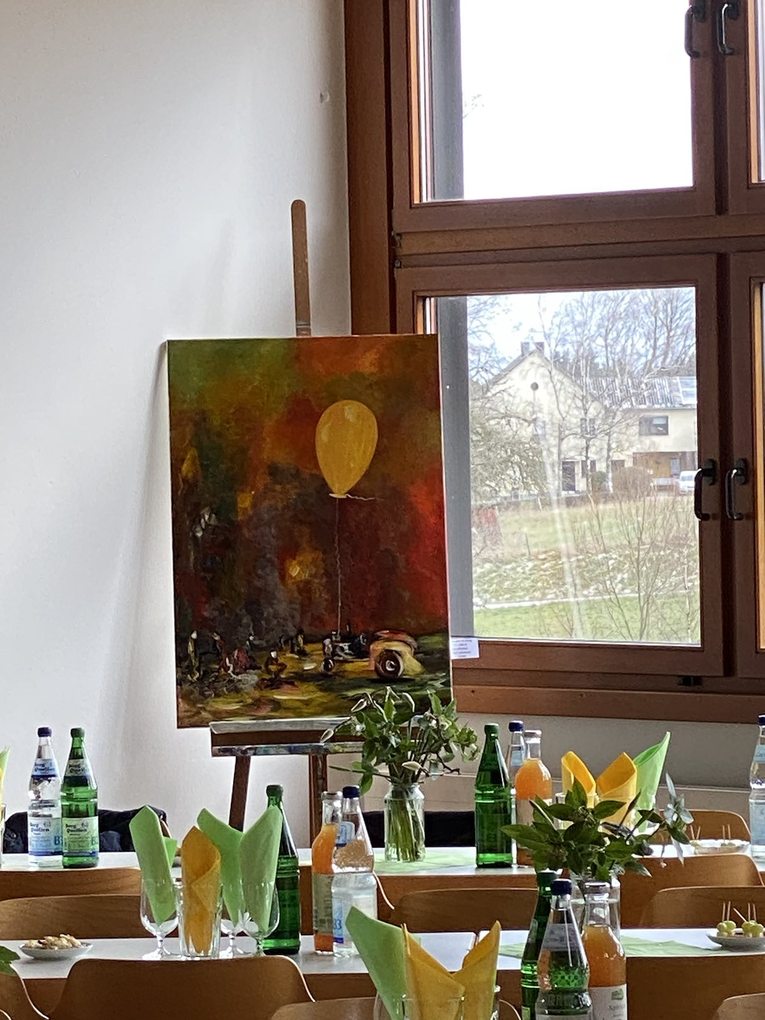 Ca. 100 Gäste kamen und hatten die Möglichkeit, die wunderbaren Bilder anzuschauen und bei Interesse auch käuflich zu erwerben. Ein kleines Programm mit Musik- und Lesung ergänzte die inhaltlichen Beiträge, die den Künstler vorstellten, aber auch auf die Dramatik der Situation in dem vom Erdbeben betroffenen Nord-Westen Syriens hinwiesen. Für die Unterstützung dort bereits arbeitender kleiner Organisationen wurden durch das anschließende Internationale Benefizbuffet Spenden erbeten. Nicht nur grandiose Spenden für das Buffet mit syrischer, eritreischer, tadschikischer, afghanischer, indischer, somalische, spanisch, französischer, deutscher Küche, sondern auch noch fast 2000 Euro an Spenden wurden durch diese Veranstaltung eingenommen, die zeitnah weitergeleitet werden. Wir danken allen, die diese Veranstaltung möglich gemacht haben.