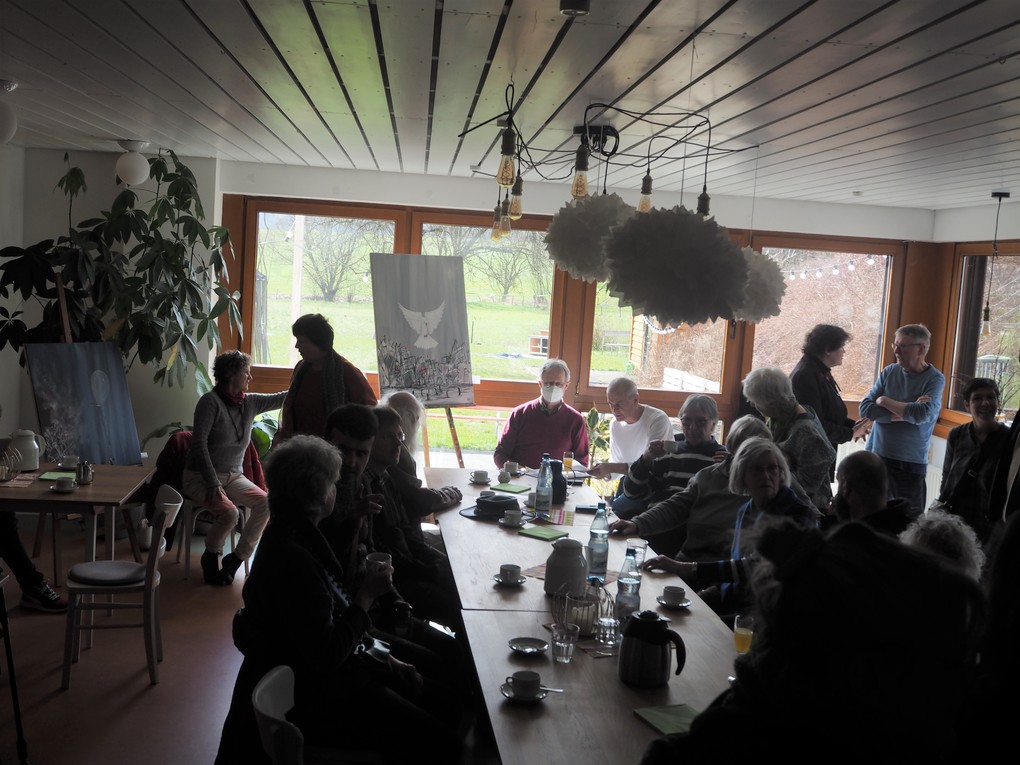 Das ehrenamtliche Team des Café International hat die rund 40 Besucher der Finissage mit einem Sektempfang und kleinen Köstlichkeiten umsorgt. Den Engagierten gilt großer Dank!