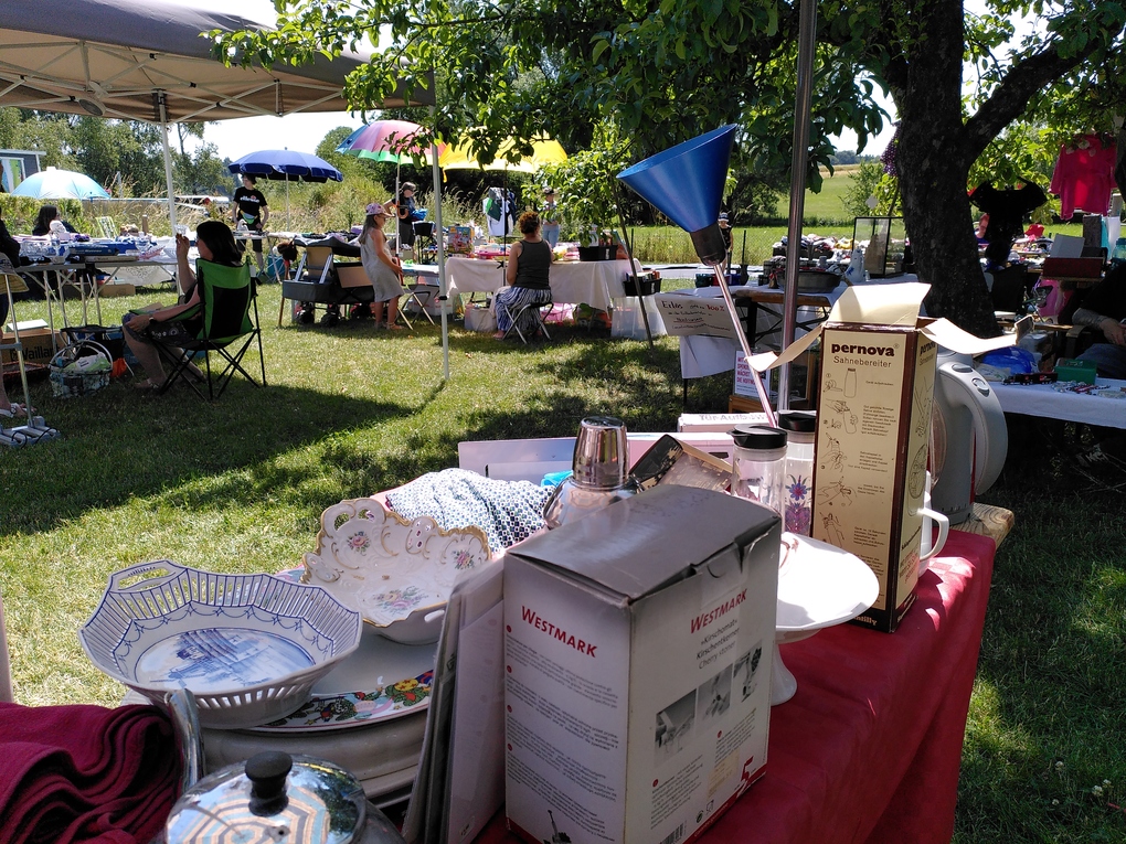 Strahlender Sonnenschein, heiße Temperaturen und fröhliche Gesichter: das war der Rahmen des Flohmarktes, der am Sonntag, den 25. Juni, im Café International in Büchenbeuren stattfand. Die Veranstaltung war sehr erfolgreich – davon zeugt die Einnahme dringend benötigter Spendengelder. Bereits im Vorfeld waren alle Verkaufsplätze ausgebucht: Sowohl private Verkäufer als auch Mitglieder der Syrienhilfe Vorderhunsrück e.V. verkauften auf dem Flohmarkt ihre „Schätze“. An ihrem eigenen Stand wurden 250,- € an Verkaufseinnahmen und Spenden zusammengetragen. Jutta von Dahl, die diesen Stand für den Verein betrieb, war zufrieden: „Wir wollten wieder zeigen, dass die Erdbebenopfer in Syrien nicht vergessen werden sollen und dürfen!“ Das Geld wird nun direkt an Organisationen weitergeleitet, welche die Menschen in der syrischen Krisenregion unterstützen. Und auch das Café International hat von der Veranstaltung profitiert. Ein toller Erfolg für die vielen Engagierten, die diese Veranstaltung ermöglichten. Die Standgebühr für die privaten Flohmarkt-Verkäufer war eine freiwillige Kuchenspende. Durch die Abgabe von Gebäck & Kaffee sowie selbstgemachter, kühler Limonade an die Besucher nahm das Café 400,- € an Spenden ein. Mit dem Geld werden Angebote und Ausflüge für Kinder finanziert, die in diesem Sommer nicht mit ihren Familien in den Urlaub fahren können. Anja V., seit einigen Monaten im Café engagiert, ist begeistert, dass solche Veranstaltung so viel Solidarität auslösen.“Ich habe noch nie einen Flohmarkt erlebt, bei dem am Ende so viel getauscht oder verschenkt wurde. Auch die Idee mit der freiwilligen Kuchenspende als Standgeld fand ich super.“ So ist auch dieser Flohmarkt ein Teil des Solidarischen Miteinander im Rhein-Hunsrück-Kreis( SoliMi) geworden. Bereits einen Vorgeschmack auf Sommergefühle gab es an diesem Tag in dem sonnigen Garten: entspannte Stimmung, zahlreiche Begegnungen mit Verzielscher un Stickelscher, ausgelassen spielende Kinder, … Der erste Flohmarkt im Garten des Café International war ein voller Erfolg! Weitere Veranstaltungen des Café International in diesem Sommer werden fortlaufend auf der Webseite www.cafe-international-buechenbeuren.de veröffentlicht.