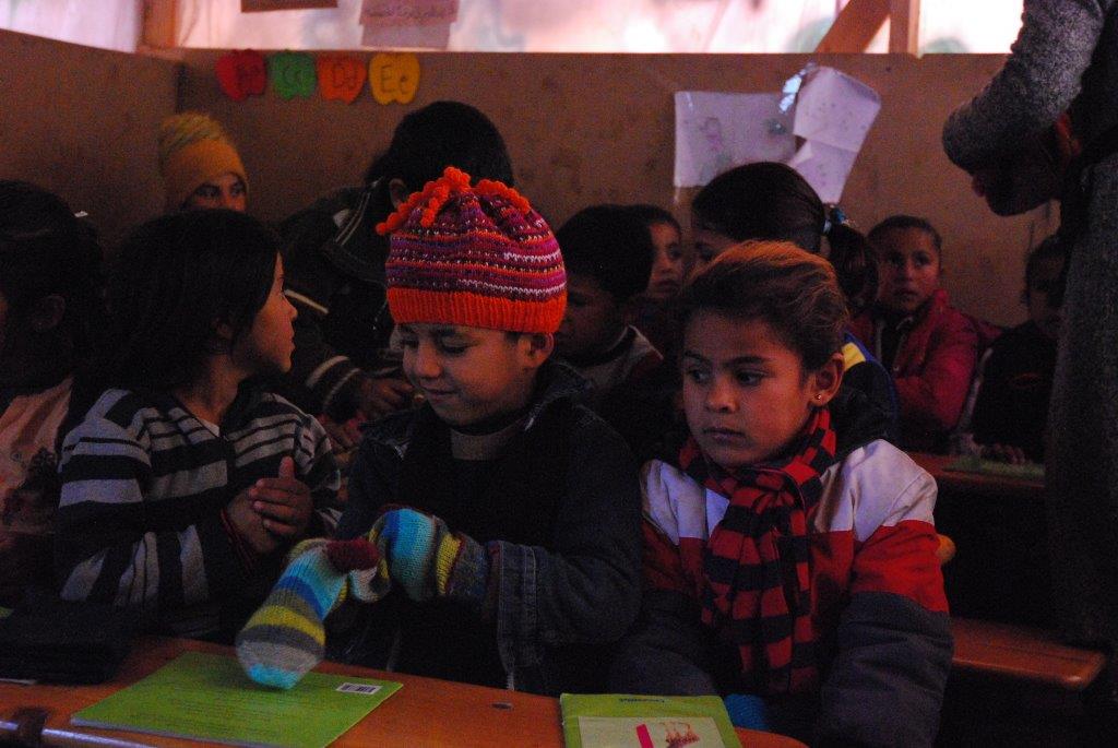 - Verteilung der sehr umfangreichen Wintermützen- / Handschuh- / Schal-Spenden, die viele von unterstützt hatten, an die Schulkinder direkt vor Ort