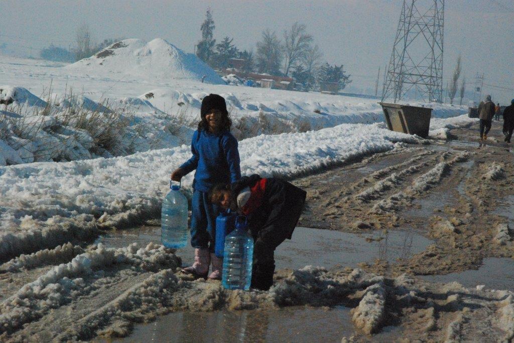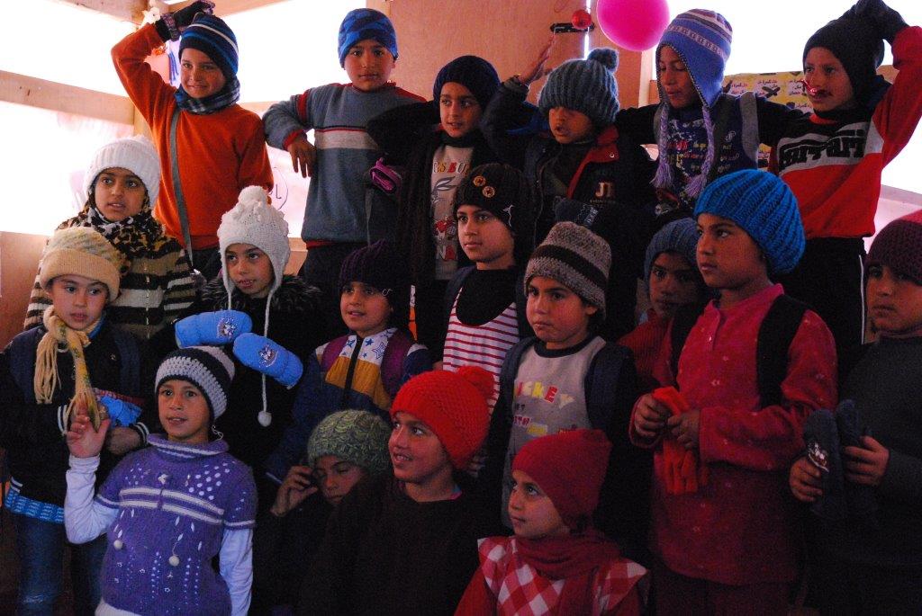 Die Camps wie an der Perlenschnur. Zelte verstärkt durch Pappe, Lattengerüste, Autoreifen, Schnüre, manche mit Ofenrohr, vereinzelt Satellitenschüsseln. ca. 500 bis 1.000 Einwohner. Stromanschluss ist da, Frischwasserversorgung schwierig, Abwasserentsorgung noch schwieriger. Und überall Kinder, Kinder und nochmals Kinder. Sprudelnd, fröhlich und doch dann beim Besuch in der Schule mit dem Ernst, der sie fast erwachsen sein lässt. Dazwischen viele Jugendliche. Dann die Betagten, zerfurcht , resignativ zum Teil müde. Hoher Schnee und strahlendes Licht lässt alles milder erscheinen als es ist. Die Konfrontation mit den Kindern ist für mich emotional einschneidend. Ihre Begeisterung im Schulzelt, ihre Neugier, ihr Ernst, ihre Fröhlichkeit trotz allem. Große Freude über die bunten Wintersachen, die wir Camp für Camp verteilen (nur sieben Camps werden geschafft, Notizen über die Bedürftigkeit der Familien, der Rest wird von den Mitarbeitern und Lehrern verteilt werden).