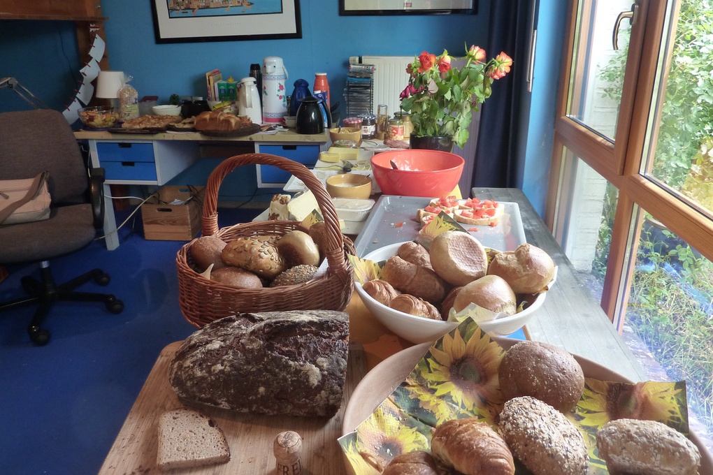 Gut sichtbar stand in der Mitte des Esszimmers die Spendenkiste, die abends gut gefüllt war. Bei den beiden Brunchs, die bisher stattgefunden haben, kamen insgesamt 700 € zusammen. Danke!