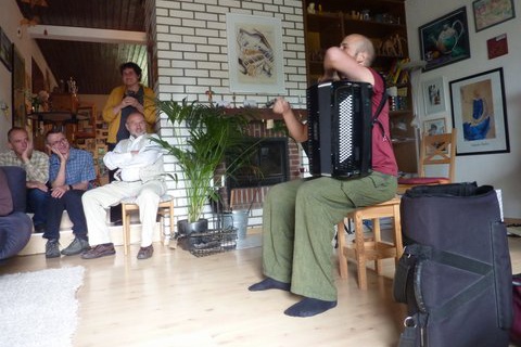 Gerlind Hentschel aus Buchholz hatte die Idee, sich musikalisch dem Thema "Flüchtlinge" zu nähern. Schon zum zweiten Mal lud sie viele Freunde zum Essen, Trinken und Musikmachen ein, darunter auch Mitglieder der Syrienhilfe Vorderhunsrück.