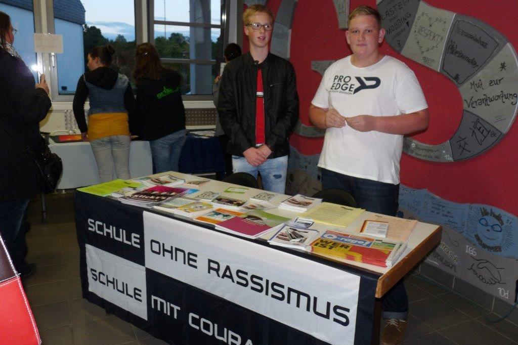 Die auf Tischen ausgebreiteten Mal- und Zeichenarbeiten von Schülern konnten durchstöbert und auf Wunsch zum Preis von fünf Euro erworben werden. Daneben waren Infotische aufgebaut, die über Nachhaltigkeit im Umgang mit Ressourcen, Rassismus und Maßnahmen zum Umweltschutz informierten. Langweilig wurde es zu keinem Zeitpunkt, notfalls konnten die verbauten Flaschen des Flüchtlingsbootes gezählt werden.